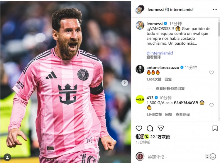 梅西社媒:全队弘扬出色,打败了老是让咱们堕入鏖战的敌手