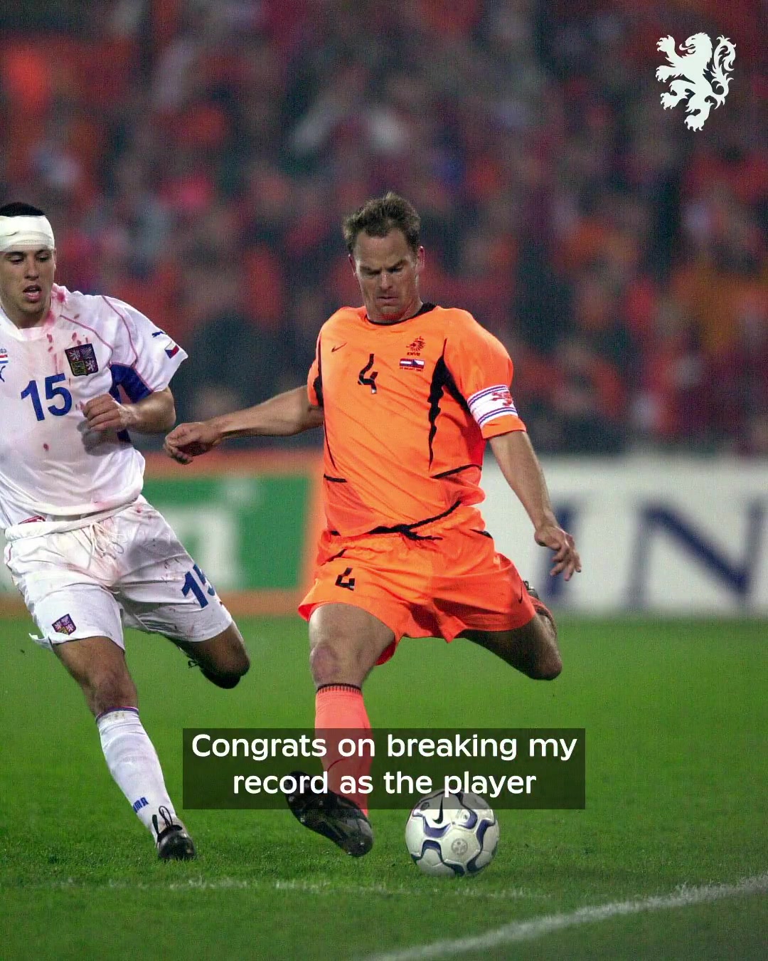 弗兰克·德波尔道贺范戴克,他说说念:“你好,维吉尔。道贺你冲破我的记录,成为荷兰队史出场最多的队长。”