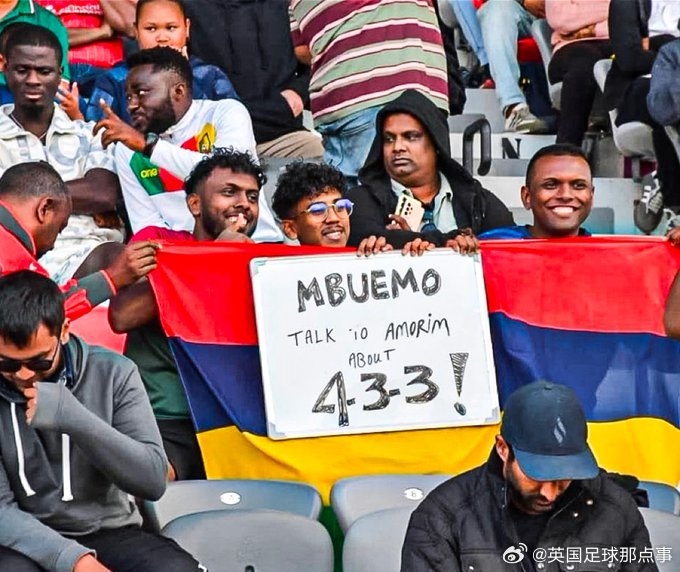😅昨晚喀麦隆的比赛,看台上球迷向姆伯莫寄语:“姆伯莫,跟阿莫林说念说念4-3-3阵型”