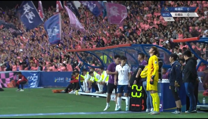 为点球大战作念准备!南通第90分钟换下首发门将,蔡天龙替补登场