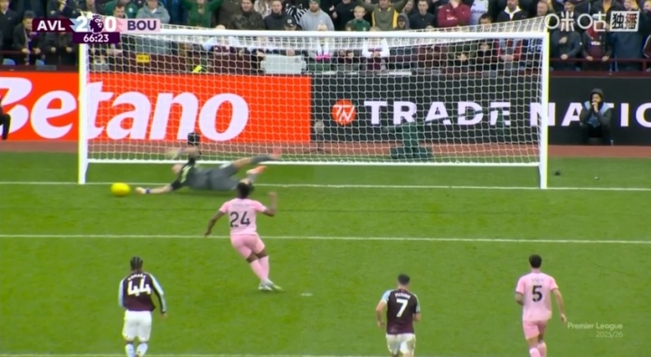 比赛第67分钟,罗杰斯在禁区内手球,伯恩茅斯得回点球,塞梅尼奥主罚点球被马丁内斯扑出,维拉仍2-0迥殊!