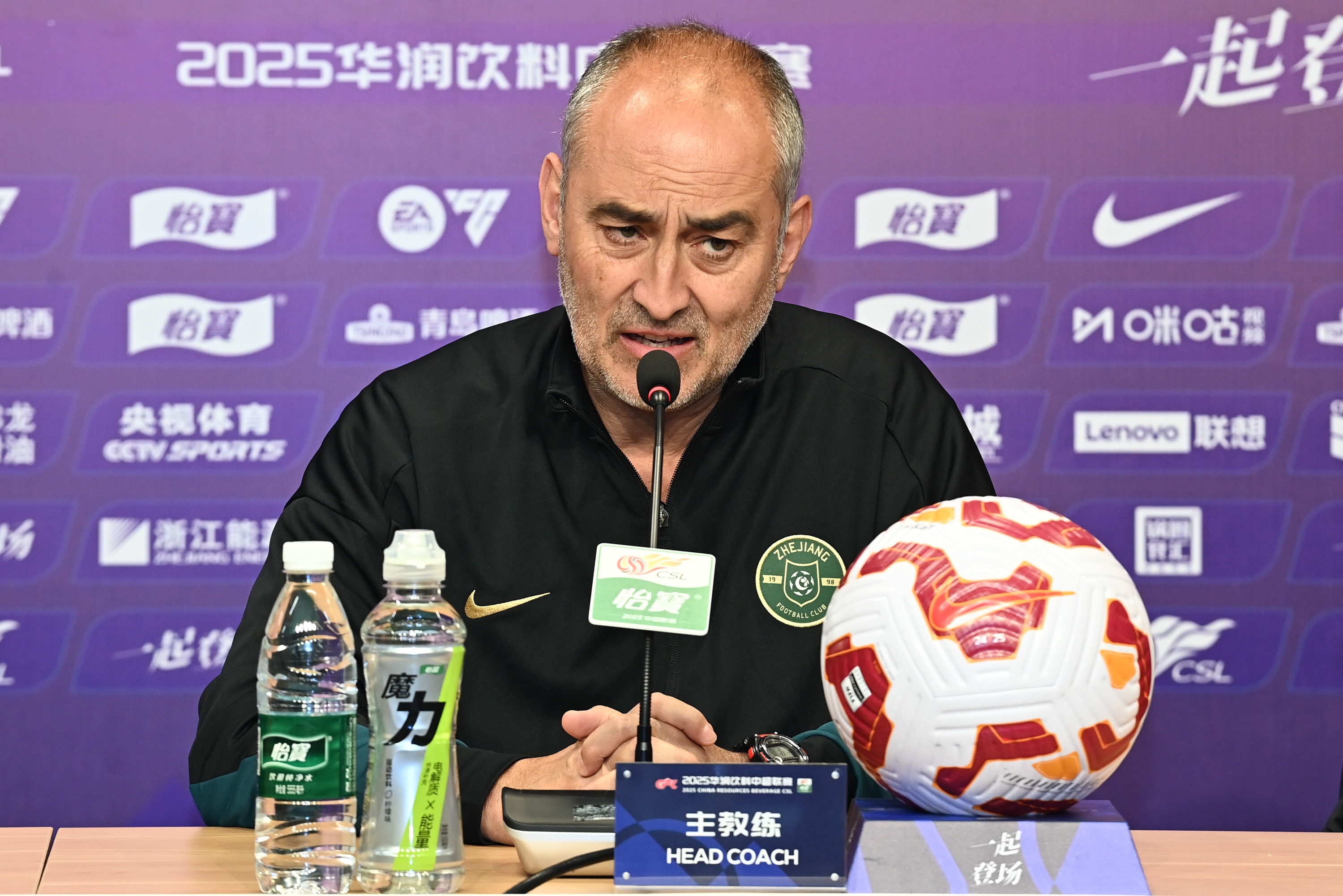 11月21日讯 中超联赛终末一轮,浙江队将主场对阵青岛海牛。据《足球报》报说念,赛前,浙江队主帅卡内达携球员弗兰克出席了新闻发布会。