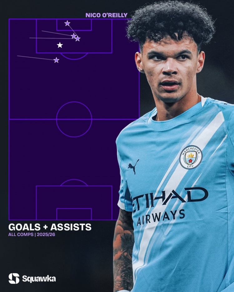 他还助攻格瓦迪奥尔破门,这意味着他在伊蒂哈德球场的最近四场英超比赛中王人有进球或助攻: