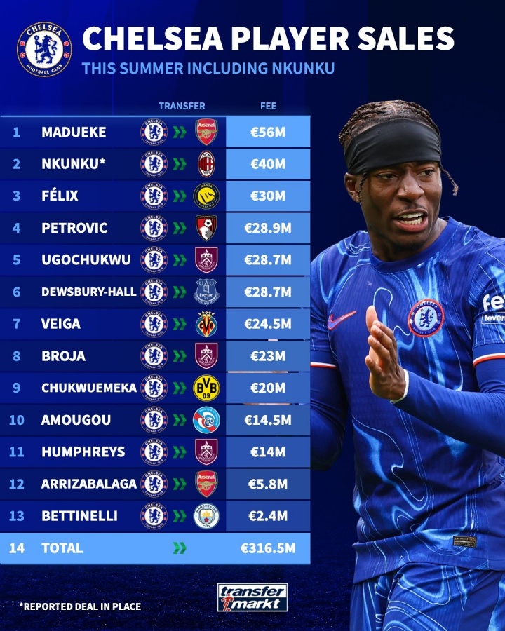 卖东谈主的神🤑切尔西超4000万卖恩昆库,今夏卖13东谈主收入超3.16亿欧