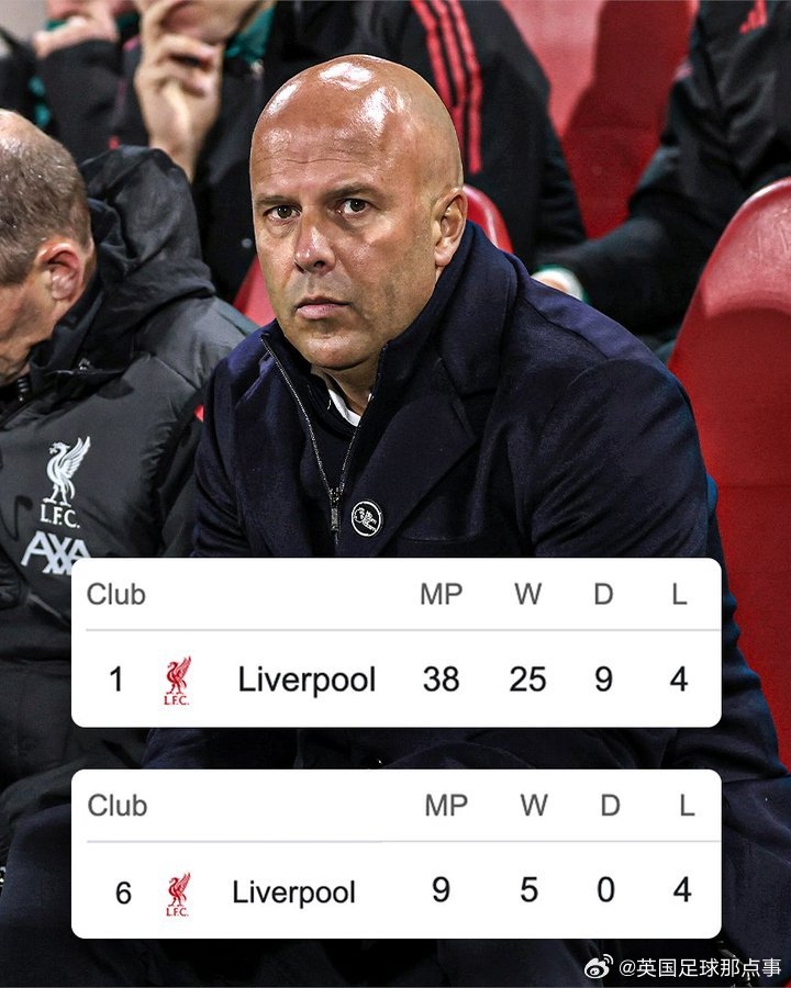 【景色暴跌】利物浦也曾输了4场英超 与上赛季统共这个词赛季相通多👀