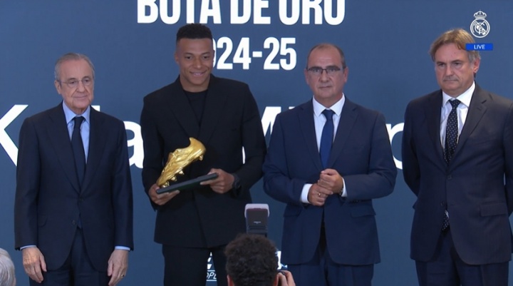 生活初次获奖!姆巴佩领取24-25赛季欧洲金靴,皇马全队到场赈济