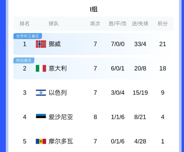 I组的地方肤浅明了,挪威和意大利皆治服了插足小组前二。除非意大利以9球及以上上风打败挪威,不然挪威就将获取小组第一纵贯宇宙杯。挪威上一次参加宇宙杯还要追猜测1998年,其时哈兰德还没出身。