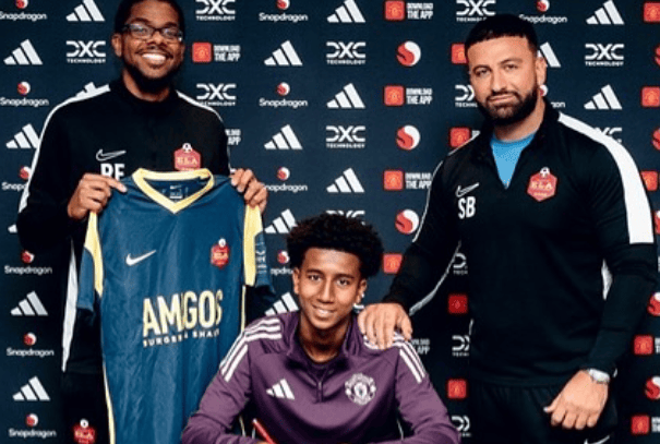 在签约挂念照中,他身着10号球衣,与两名来自西伦敦这家足球学院的补助合影迷恋。接下来,他将加入曼联U14梯队。