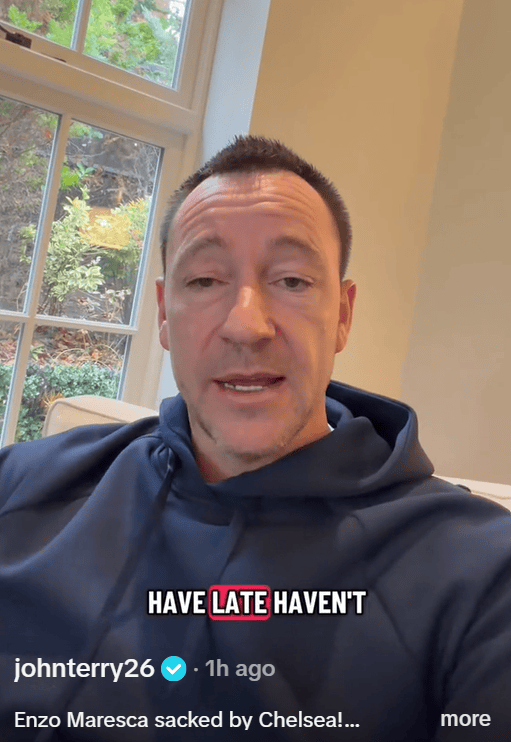 虎扑01月01日讯切尔西官方阐发恩佐-马雷斯卡以两边协商一致的口头卸任主素养一职后,切尔西名宿约翰-特里在个东谈主TikTok账号上作出答谢,默示我方“扫数被追悼”,并坦言此前并未意猜度这一决定的到来。