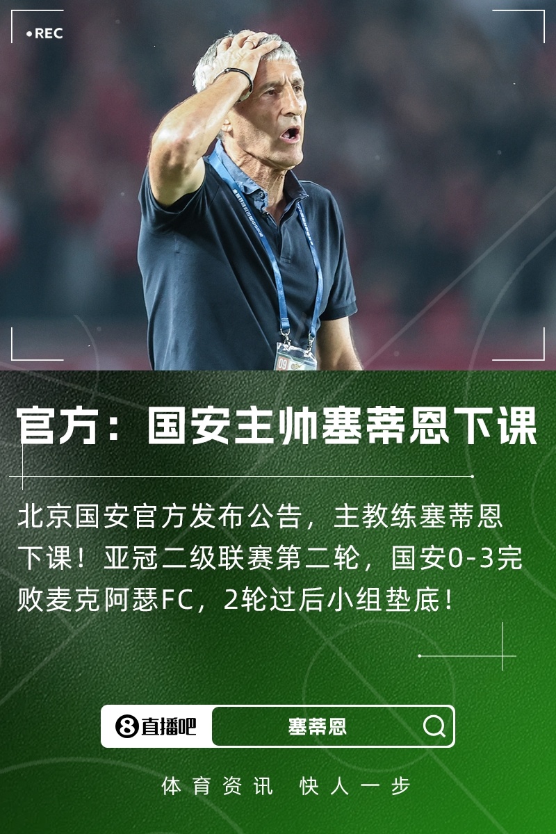 国安官方:主帅塞蒂恩因个东谈主原因建议离职央求,董事会接收辞呈