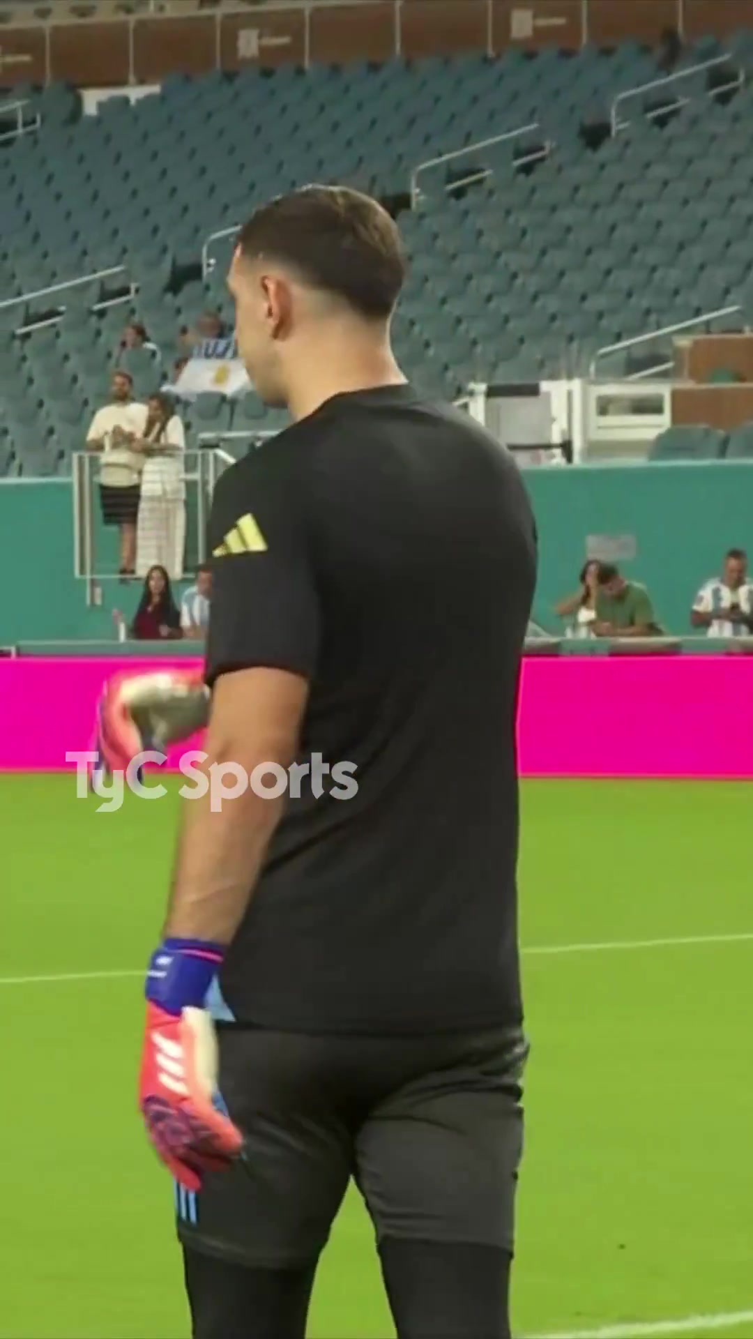 阿根廷队今天在迈阿密与委内瑞拉队热身,赛前,阿根廷队门将大马丁看到了一位身穿他的家乡球队阿尔多西维球衣的球迷,并商定施助练习服。随后,大马丁让责任主说念主员将我方的练习服施助给这位球迷。