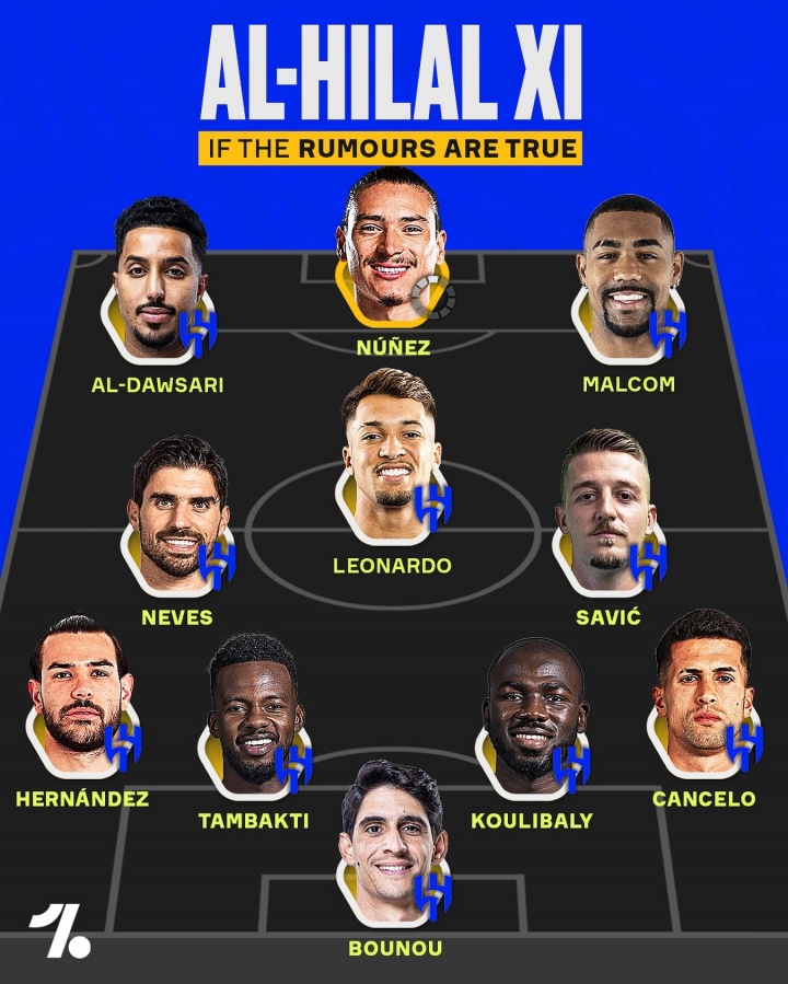 这咋玩?亚冠无外助限定 月牙首发9外助:努涅斯、特奥坎塞洛....